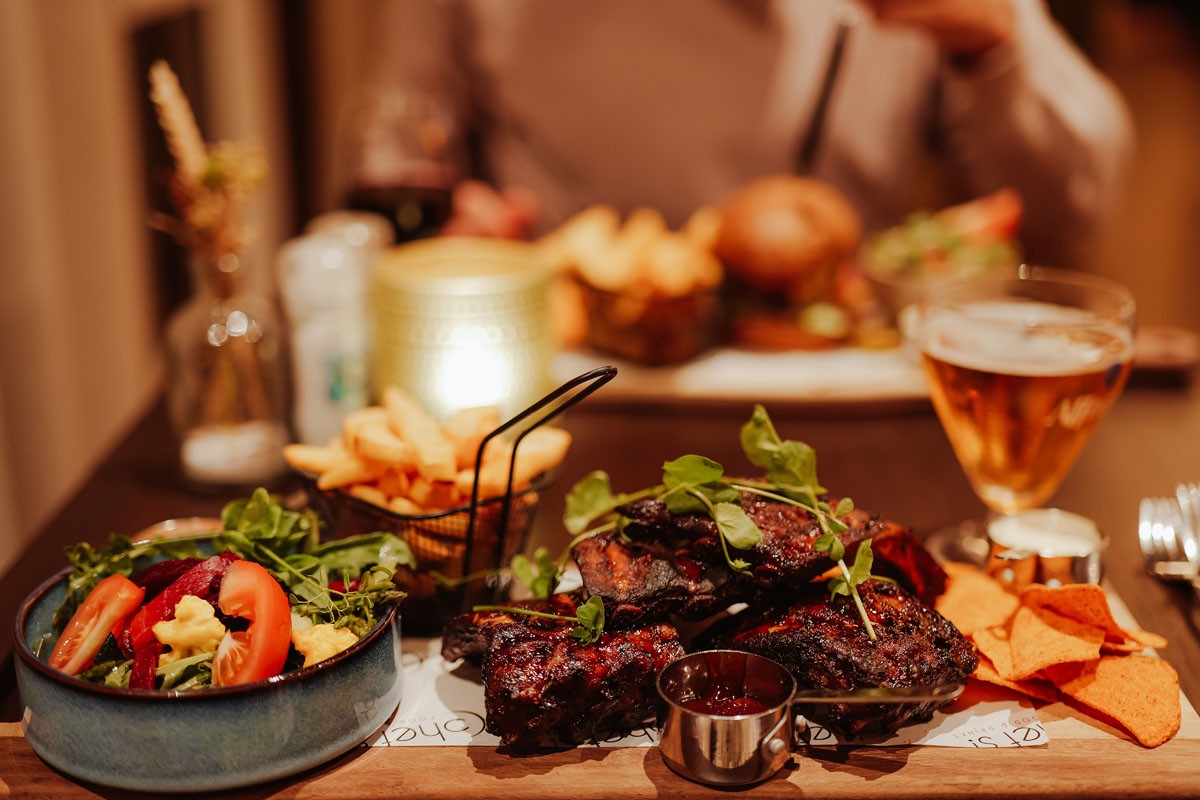 Als hoofdgerecht kozen wij de hamburger en spareribs.
