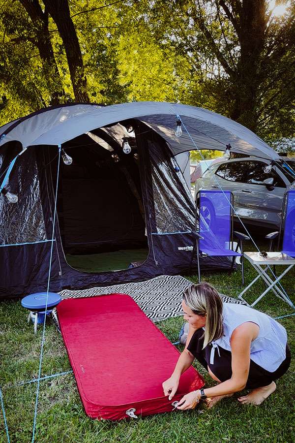 Dan door met de basis, want een goede nachtrust is key en dat kan nog wel eens een uitdaging zijn wanneer je in een tent(je) slaapt. De kampeertip die met stip bovenaan staat is: investeer in een goed matras. Zo lazen we al snel de tip over de slaapmat van Vaude bestaande uit een schuimmatras in combinatie met lucht. Dit zijn dikkere matrassen, waardoor je minder of niet de kou vanaf de grond voelt en je ligt een stuk comfortabeler dan een dun matje of een luchtbed, en ze zijn ook nog eens zelfopblazend. Onze ervaring: het ligt zo ideaal als dat het klinkt! Het is ontzettend gebruiksvriendelijk omdat je de dop openzet wanneer het matras zichzelf moet opblazen en vervolgens doe je de dop dicht wanneer het matras de juiste dikte heeft bereikt. Bij vertrek zet je de dop weer open en bij het oprollen gaat vanzelf de lucht er weer uit. Slaapmat Dream 10 L is maar liefst 200 bij 70 cm en 10 cm dik.