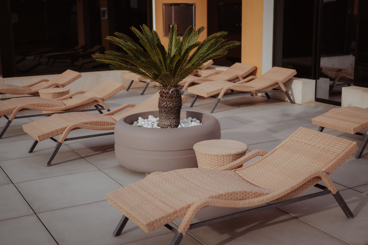 Op de bovenste verdieping van het hotel is de spa en wellness gelegen. Bij mooi weer, of voor een frisse duik, geniet je van het ruime zonneterras met buitenzwembad. Vanaf het terras heb je een prachtig uitzicht over zee.