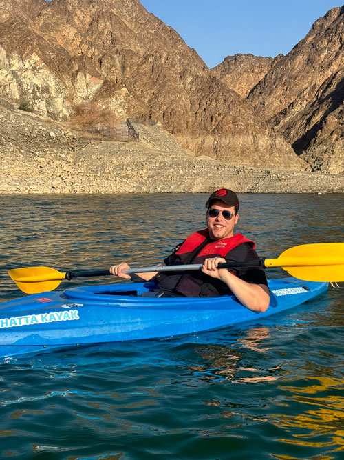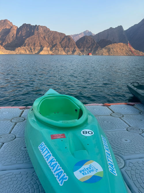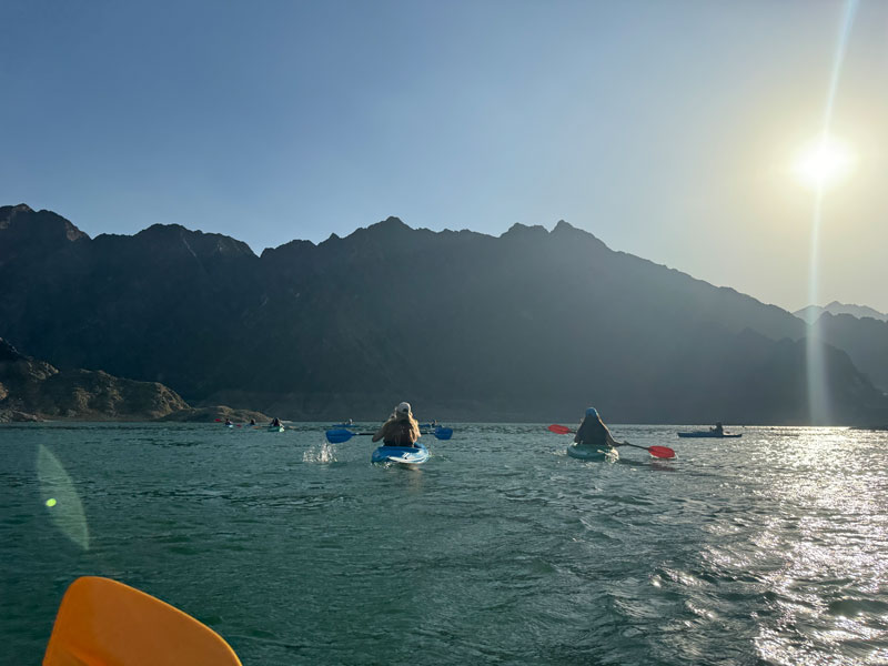 Aan het eind van de middag zijn we gaan kajakken op de Hatta Dam. Deze enorme dam is omgeven door steile bergen en het water is opvallend blauw. Dat geeft een mooi contrast met de droge rotsen. Kajakken hier is niet alleen een fysieke activiteit, maar ook ideaal om gewoon even lekker te ontspannen.