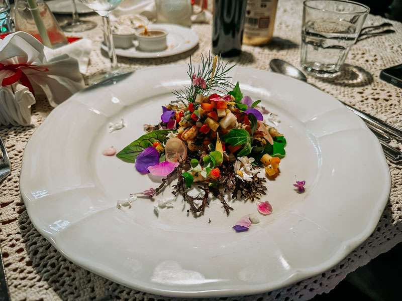 De specialiteit van het huis zijn slakken, die gevangen worden vanaf de wijngaarden. Lekker lokaal dus. Volgens de chef ook nog eens erg schone dieren en gezond. Mocht je de slakken liever aan je voorbij laten gaan zijn de vega dumplings met pompoen zeker aan te raden.