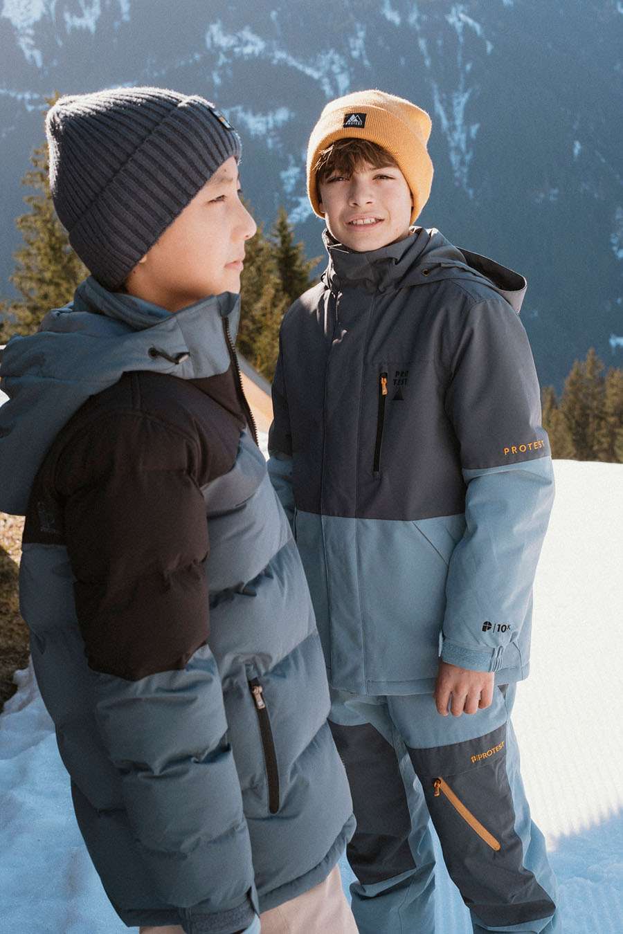 Over casual maar toch sportief gesproken: say hi to the college trend. Deze jas zit functioneel goed in elkaar, is ontzettend warm en ziet er ook nog eens stoer uit. De grote letter P op de borst (van Protest) en de boord onderaan de jas maken de look compleet. Combineer de jas met een toffe skibroek in een van de kleuren die terugkomt in de jas en de outfit van je zoon is meteen af!
